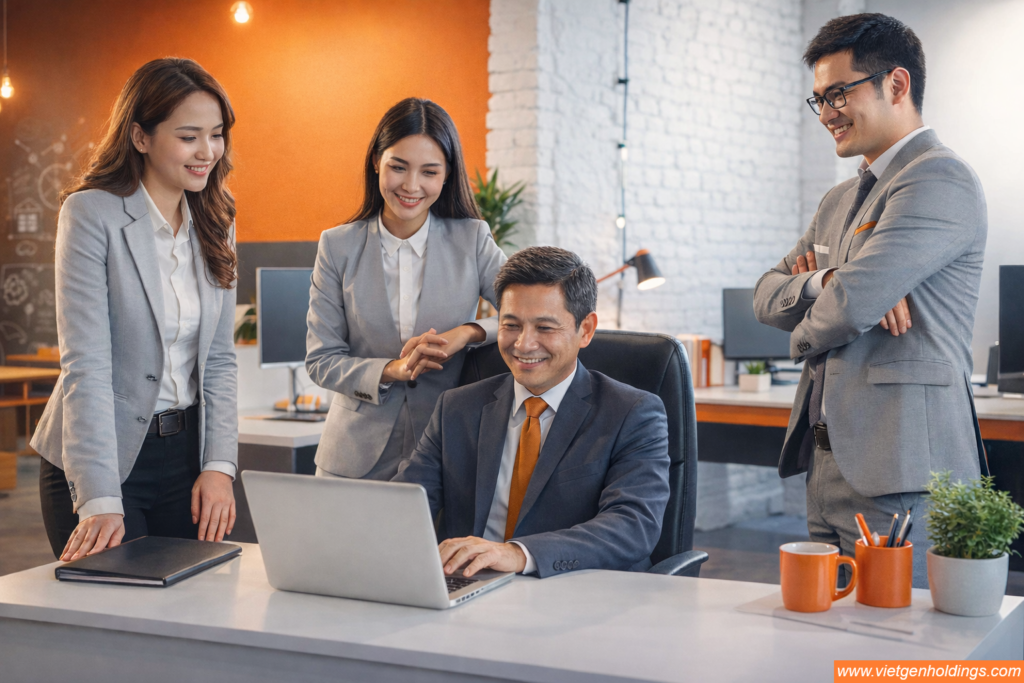 Chúng tôi không mang đến giáo trình có sẵn. VIETGEN Coach cung cấp hệ thống đào tạo được cá nhân hóa, thiết kế sát với thực trạng và ngành nghề của bạn thông qua 4 giai đoạn xuyên suốt: Nhận thức hội nhập văn hóa, Rèn luyện kỹ năng nền tảng, Nâng cao năng suất làm việc và Phát triển đội ngũ kế thừa.